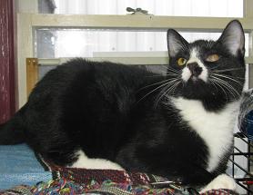 I arrived was an unclaimed stray, with a badly broken leg. That was months ago...after surgery to repair the break and months of physical therapy, time in a foster home to hang out, socialize and recoup...now I'm back and ready for love! You may have read about me int he Cocheco newsletter, so you know I'm famous too! I am a sweet, affectionate, kissy, happy cat and am not only fantastic with kids and cats but dogs too!